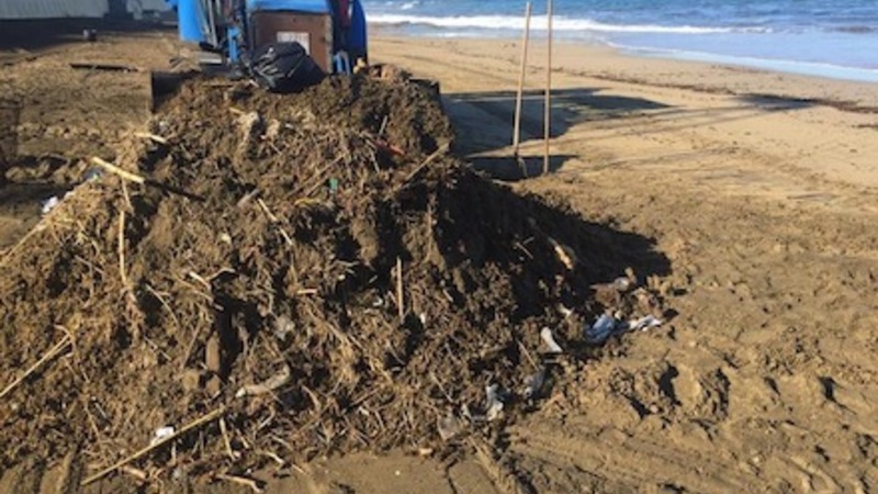 Affaldet består af tang og andre organisk affald, vragrester, mudder og sten, plastik og rester husholdningsaffald, lyder det fra det kommunale renoveringsselskab i en erklæring.
