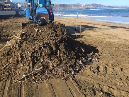 Arbejdet, som fra tirsdag har været fokuseret på fjernelse af affald fra stranden i Las Canteras - særligt mellem La Cícer og Peña La Vieja samt stranden La Laja.