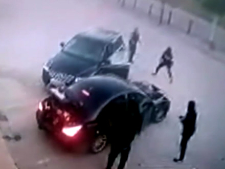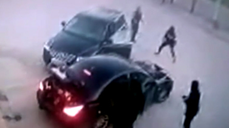 Selvom ingen andre bilister stoppede op, drejer den 60-årige resolut ind til højre og parkerer sin bil bag røvernes, så de ikke kan køre væk.