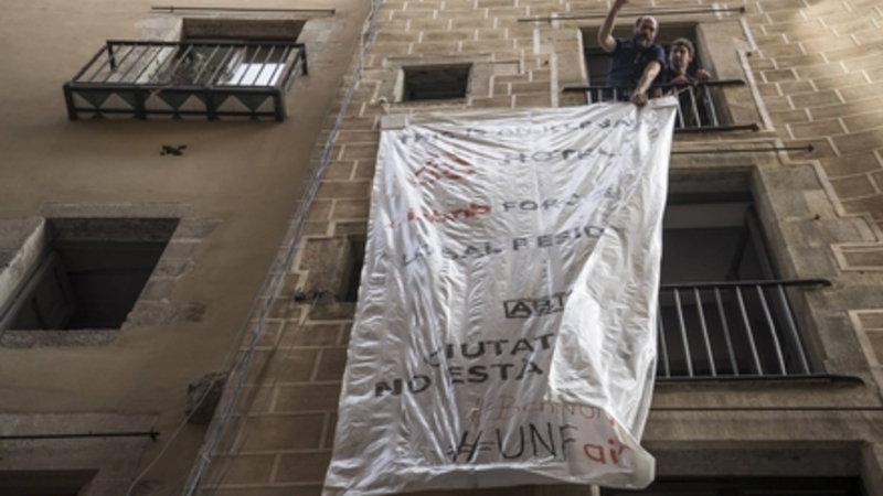 Endnu en ulovlig feriebolig blev afsløret, da aktivister fik nys om ulovligheden og hængte et kæmpe banner ned fra vinduet.