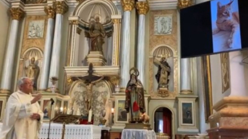 Efter den traditionelle højmesse søndag blev billeder og videoer fra borgerne vist på to store skærme placeret over alteret, så sognepræsten kunne velsigne dyrene i San Antonios navn.