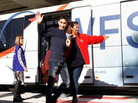 De 55 kvoteflygtninge ankom til Madrids Barajas Lufthavn omkring klokken 12 i går.