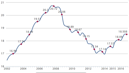 Den aktive befolkning er faldet til i alt 22.745.900 mennesker og det er det laveste antal i de seneste 10 år.