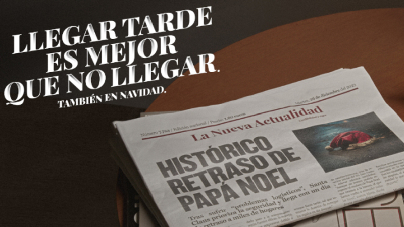 I den traditionelle juletrafik-kampagne minder trafikdirektoratet, DGT, os om, at uanset hvor vigtig rejsen (og julemanden) er, er det vigtigste at nå frem, selv om man kommer for sent.