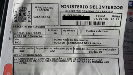 Manden fra Salamanca skal nemlig af med 80 euro for at bide negle, mens han kørte bil. Det skriver La Gaceta de Salamanca, som er et lokalt blad.