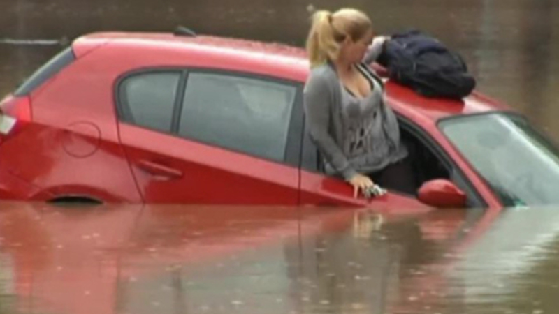 Zary Frias blev med lynets fart landskendt, da hun måtte reddes væk fra sin oversvømmede bil på nakken af en brandmand.