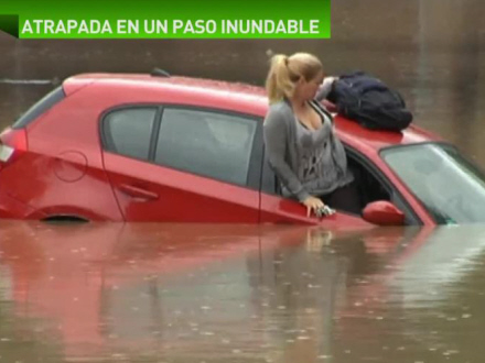 Zary Frias på 44 år blev fanget i og siden på taget af sin røde BMW nær Puerto de Sagunto og måtte reddes derfra.