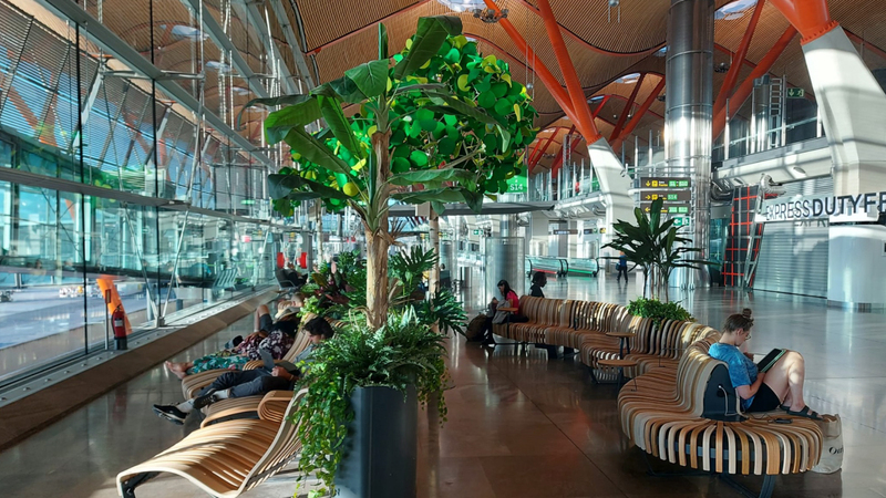 Adolfo Suárez Madrid-Barajas lufthavn tilbyder passagererne et venteområde med bæredygtige møbler i terminal T4S.
