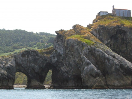 Gaztelugatxe kan faktisk også opleves fra fastlandet, fordi øen ligger så tæt på kysten, at en lille gangbro skaber mulighed for en tørskoet forbindelse.
