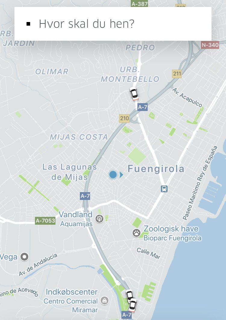Uberne kan hyres mellem Málaga og Marbella - en strækning på hele 60 kilometer, hvilket er ret usædvanligt for tjenesten.
