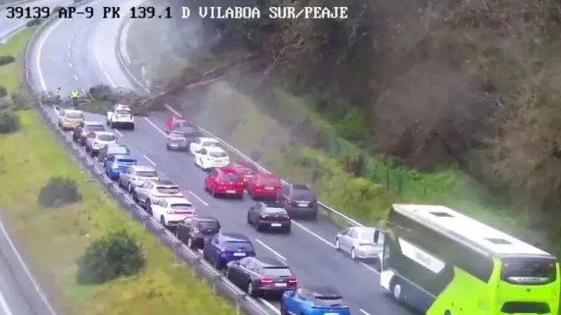 En betjent fra Pontevedras trafikafdeling blev kvæstet søndag eftermiddag, da et træ faldt ned over ham, da han havde rykket ud til en hændelse efter klokken 15:00 på grund af et andet træs fald på AP-9 over Pontevedra-byen Vilaboa, og han måtte en tur på hospitalet, skriver 20Minutos.es