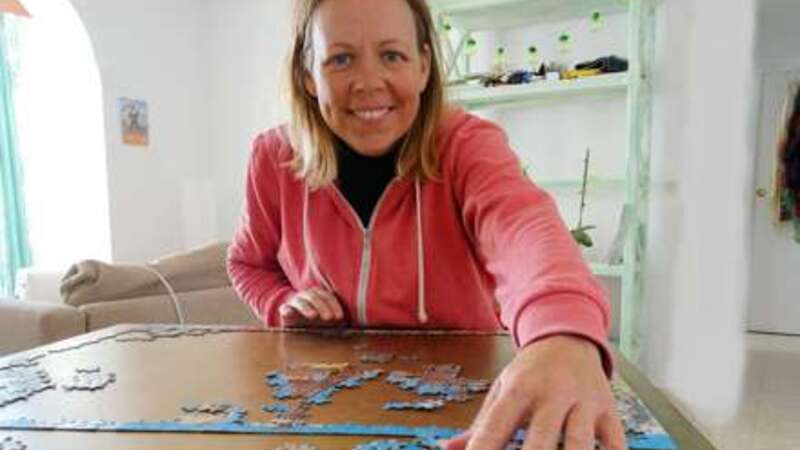 LIVET HJEMME: Alexandra i Cádiz har fundet puslespillet frem, og vil feste med vennerne på mobilen.