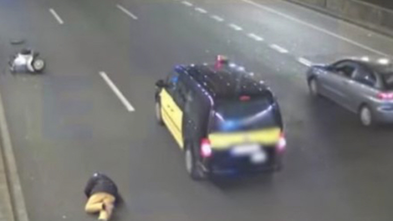 Det catalanske politi, Los Mossos d’Esquadra, har nu anmeldt den 47-årige taxachauffør, der kørte med passagerer under hændelsen.