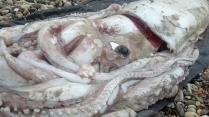VIDEO: Turist har fotograferet en gigantisk blæksprutte, mens den nedstirrede ham med sit kæmpe øje. Videnskabsfolk kan slet ikke få armene ned.
