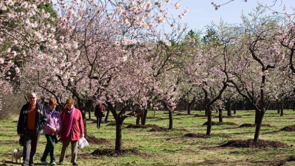Blomstrende mandeltræer midt i hovedstaden