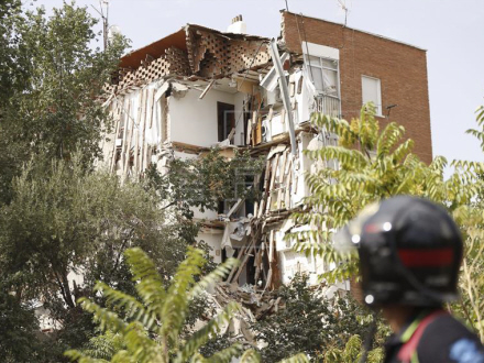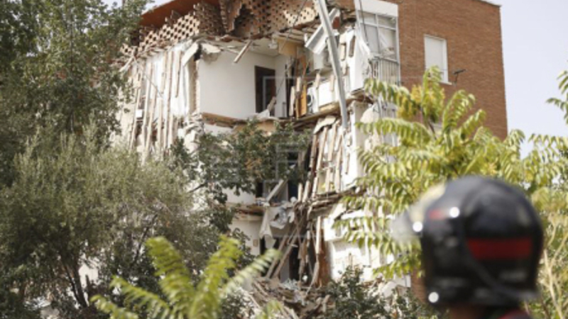 Beboelsesejendom i Madrid-arbejderkvarteret Carabanchel styrtede i går morges sammen, efter at der var opstået dybe revner i murene.