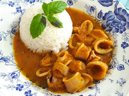 Sæt det hele tilbage på lav varme, tilsæt blæksprutterne og masser af hakket persille