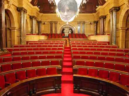 Nu forsøger hans parti så at omgå den spanske forfatning. Det sker ved at stille forslag om, at et flertal i El Parlament kan beslutte, at en person kan blive indsat som præsident uden at være til stede.