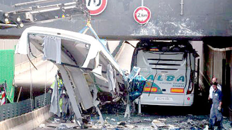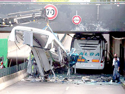ULYKKE: 44 rystede unge vendte i går hjem efter ulykke, hvor hele taget af bussen blev skrællet af. Ingen fatter, hvorfor chaufføren kørte på netop den vej, og han er nu sigtet i sagen.