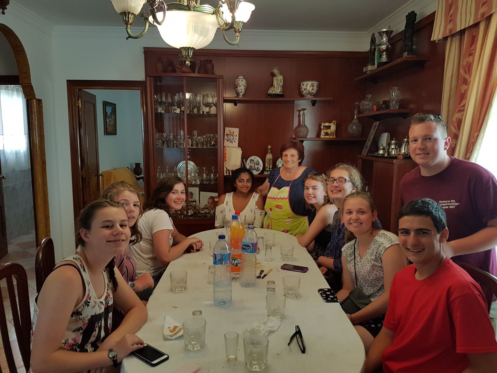 Vi bliver delt i hold på cirka otte personer. Værtinden inviteter indenfor i familiens stue, hvor man spiser hjemmelavet husmandskost og kan se sig lidt omkring i huset.