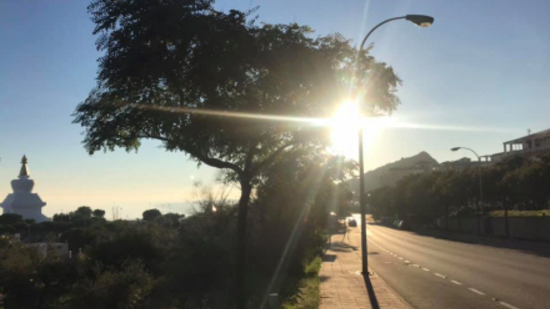 Solen skinner dejligt i hele Spanien, og det er lunt som en dansk sommerdag, hvis man finder læ. Solbriller har man også brug for.