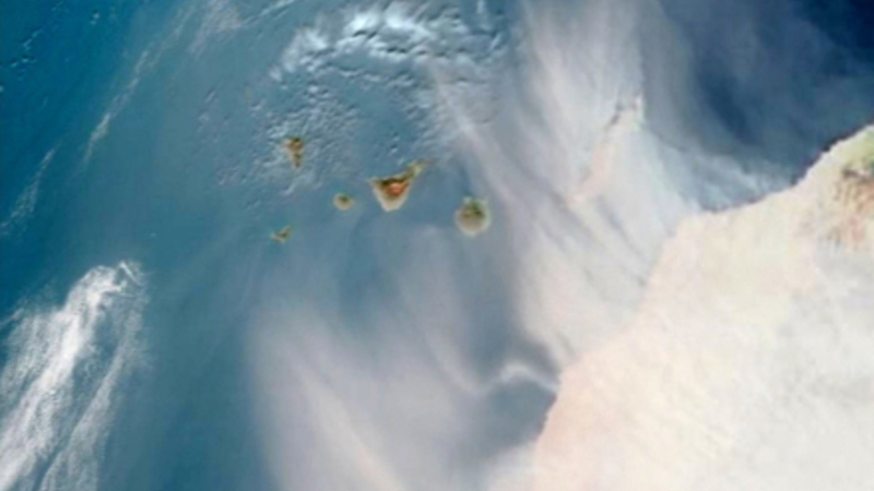 Sattelitbilledet herover er af Kanarieøerne og Afrika i går og viser tydeligt "sandblæsningen".