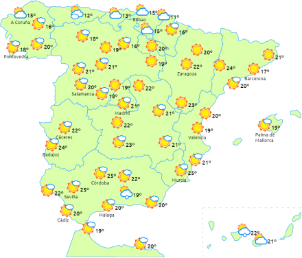 Stigende dagstemperaturer på store dele af halvøen og De Kanariske Øer, mens de er faldende i Middelhavsområdet. Nattemperaturerne falder generelt, og det giver frost i bjergrige områder og i den nordlige, indre del af halvøen.