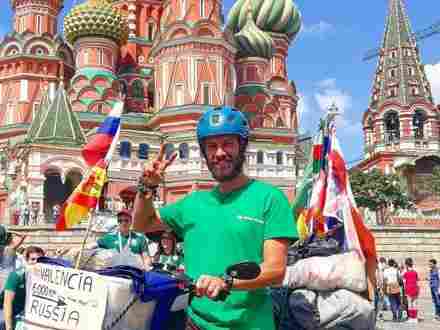 I alt blev det til ti lande og 6.000 kilometer på cykel. Det sidste land var Rusland, hvor han kom den 18. juni for at følge VM.