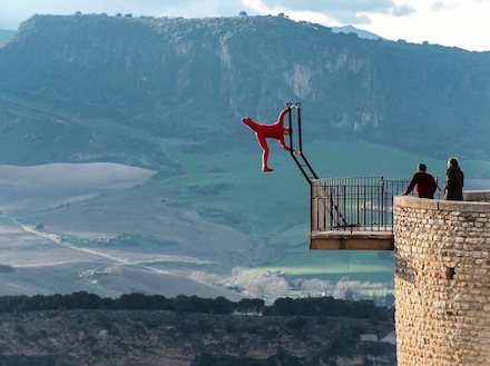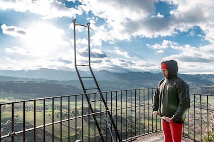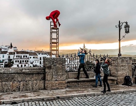 Han lavede balance-trick midt i Rondas historiske centrum - og som altid foregik uden livline eller andre former for sikkerhedsnet. Blandt andet hang Eskil ud over den verdensberømte kløft der går lodret ned 150 meter fra broen Puente Nuevo.