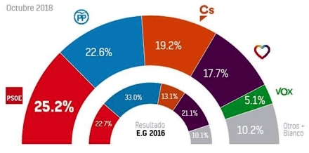 Resultatet ville være, at den venstre side i Kongressen med PSOE og Podemos vil få 42,9 procent af mandaterne, med højresiden med PP, Ciudadanos og VOX ville opnå 46,9 procent. Altså i praksis dødt løb.