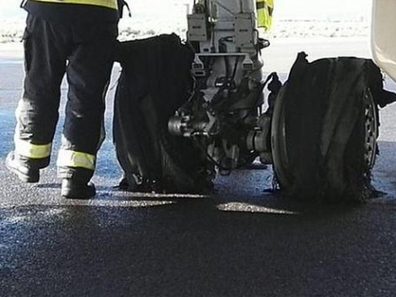 De Boeing-maskine ikke er det letteste i erden, måtte landingsbanen lukkes, mens mekanikerne måtte skifte dæk på flyet.