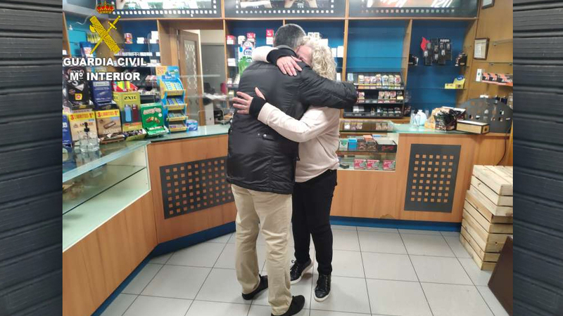 KRIMI: Butiksindehaver kastede sig om halsen på sin redningsmand, efter han modigt havde grebet ind over for to væbnede røvere i Alicante.