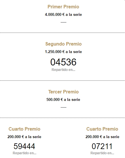 De nævnte præmier er for et ‘helt nummer’, som har kostet 200 euro. Men alle numrene sælges som ‘décimos’ - tiendedele og har derfor kostet 20 euro.