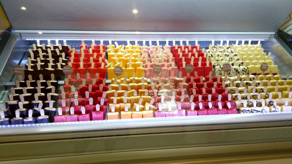 Hver dag bliver der solgt is i Nordikos. Arbejdet starter om morgenen, hvor ispindene bliver håndlaver.