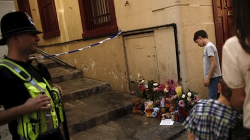 Familien blev fundet livløse i et hus på Gibraltar - badet i blod. Kvinden og de to små havde fået skåret halsen over. Manden havde knivstik diverse steder.
