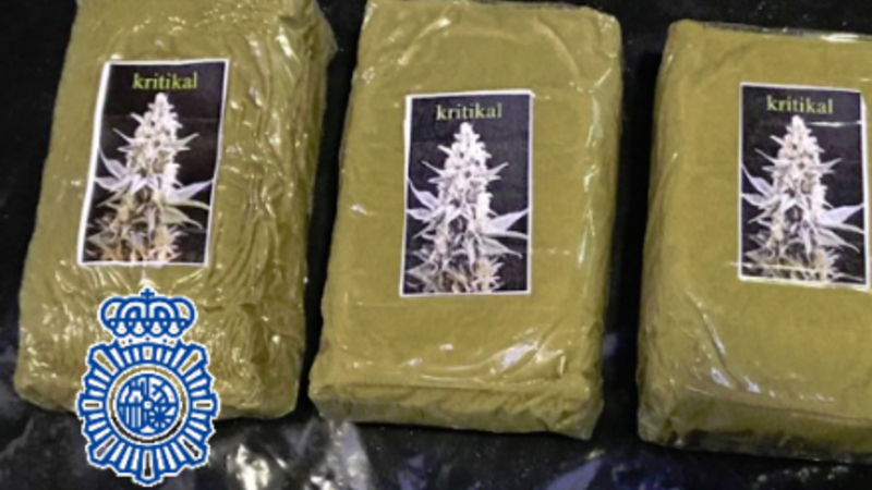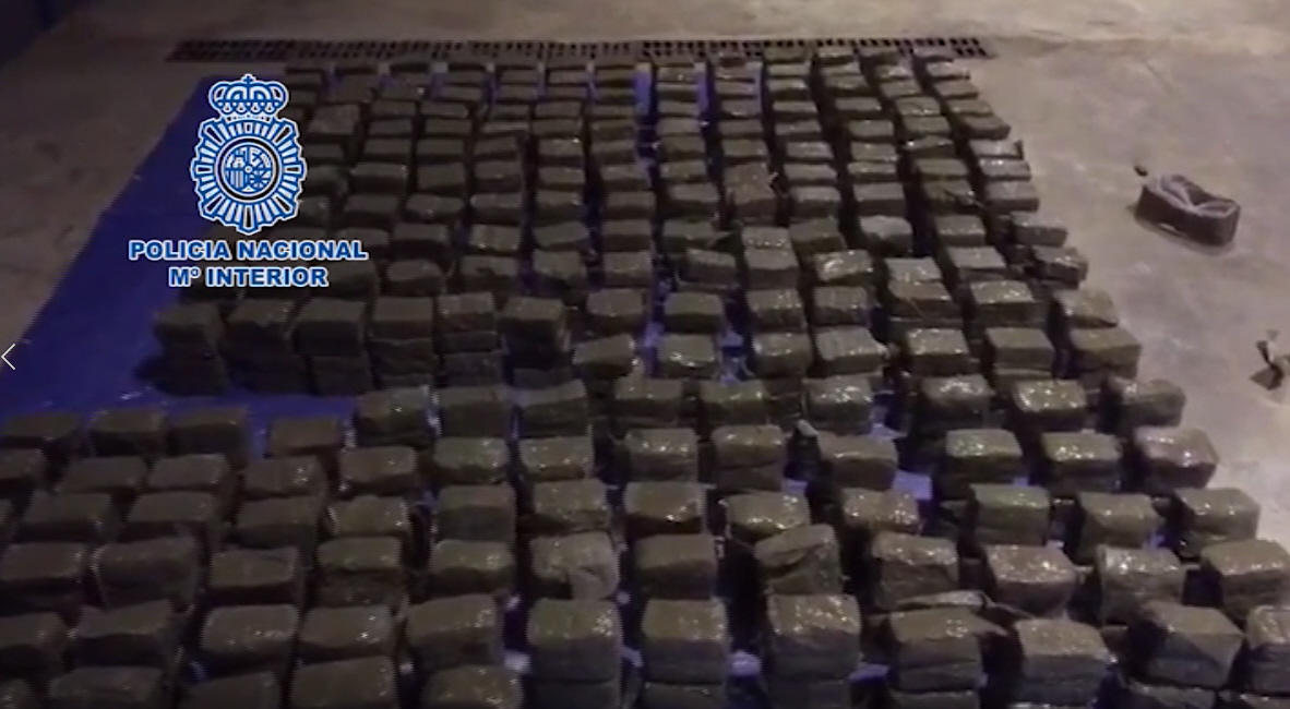 Policía Nacional har anholdt to personer i Málaga og beslaglagt 640 kilo stoffer skjult i store kasser med sand.