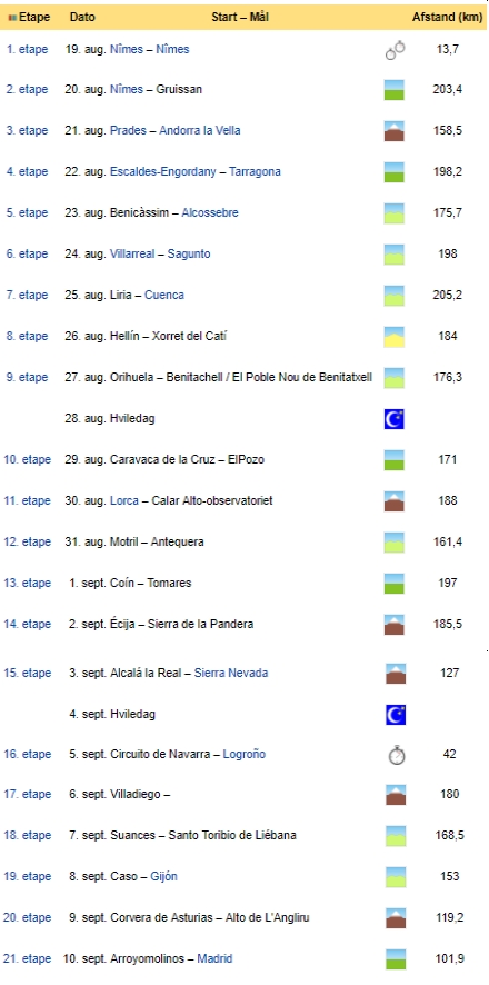 Dag for dag kan du få alle detaljer på La Vueltas hjemmeside og selvfølgelig de mange sportsmedier, der følger begivenheden.