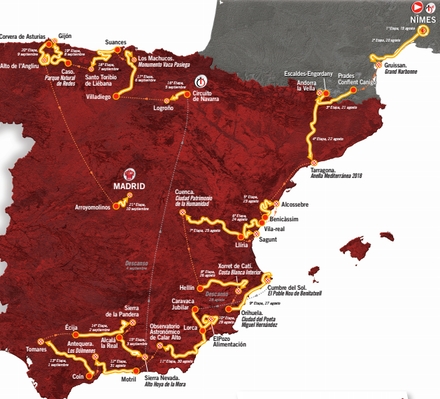 Lørdag startede det 72. udgave af Vuelta a España i den franske by Nimes. Det slutter den den 10. september med promenade-kørsel ind til Madrid.