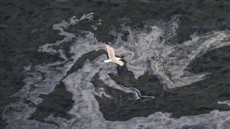 Mange fugle er døde, efter de er blevet smurt ind i olie, og der er også fundet fisk, skildpadder og nu på det seneste delfiner spækket til med olie.