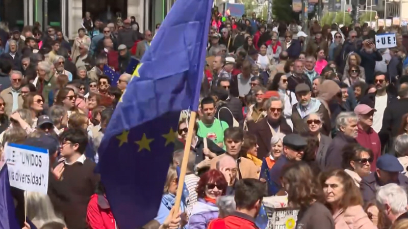 Ifølge de spanske myndigheder var der cirka 1.000 deltagere, der med sloganet "En defensa de Europa y la democracia" (Til forsvar for Europa og demokratiet) understregede EU's betydning som "menneskehedens største politiske projekt" i form af rettigheder og sammenhold.