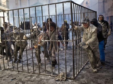 Fra morgenstunden bliver byens torv besat af hæren 'Els Enfarinats'.
