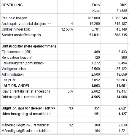 Er fællesskabet enige, kan man også vælge at leje boligen ud i de tomme perioder, der i mange tilfælde kan være højsæson i Sydspanien.