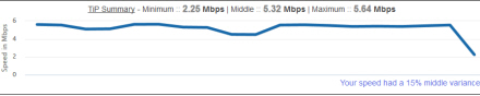 Eksempel på dårligere forbindelse, hvor kurven svinger op og ned og nærmer sig den kritiske grænse på 2Mbps