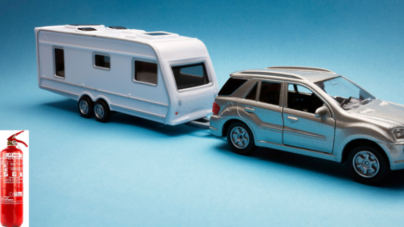 Vest, lys og brandslukker i bilen.