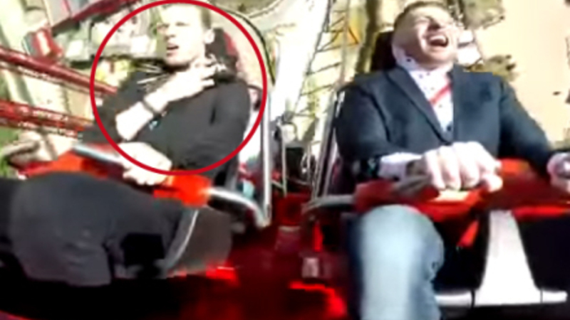VIDEO: Passager i Europas hurtigste rutsjebane fik sig et gevaldigt chok, da en fugl kom i vejen for hans ansigt.