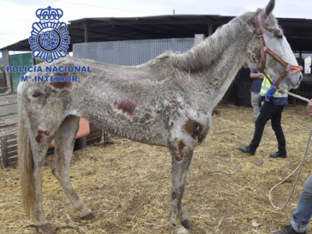 Det fremgår af en pressemeddelelse samt en video fra Policía Nacional, der har anholdt to personer på henholdsvis 44 og 75 år for grov dyremishandling efter at have fundet 22 heste og fire hunde med tydelige skader.