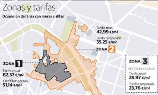 Caféers og restauranters brug af byen fortove er en god business for kommunen,og nu synes Valencia Kommune, at restauratørerne skal spytte mere i bøssen.