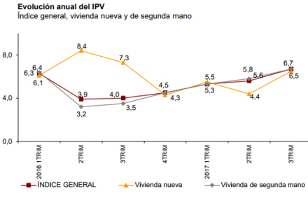 Med hensyn til nye boliger steg prisen i gennemsnit 6,5 procent i samme periode, hvilket er en stigning på over to procentpoint i forhold til det foregående kvartal.