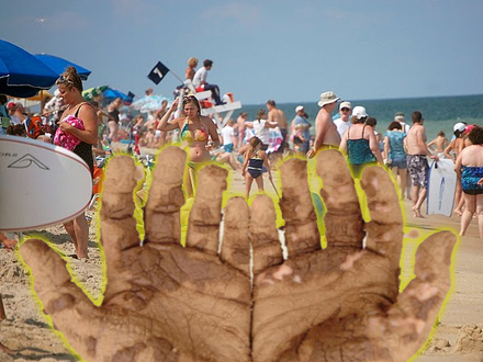 I virvaret af strandgæster dukker en strandsælger op. Han har sangría, sandwiches, samosa og mojitos.