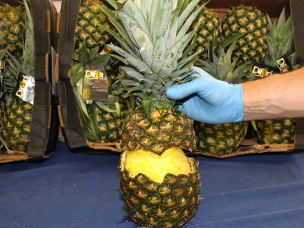 Policía National har konfiskeret 67 kilo kokain, der var skjult rigtigt godt i udhulede ananas.